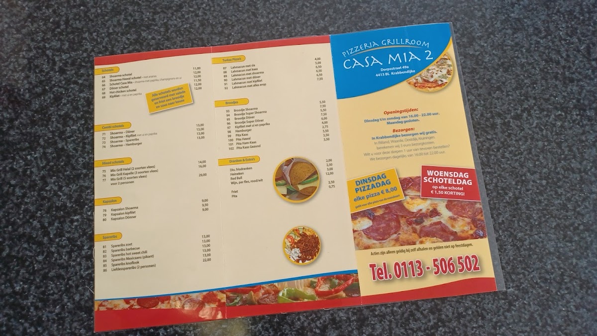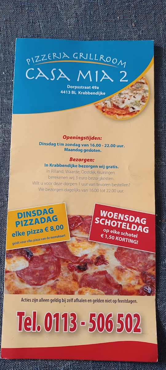 Welcome to Casa Mia 2, a delightful culinary gem nestled in the heart of Krabbendijke on Dorpsstraat 49. This inviting eatery has quickly garnered a loyal following since the arrival of its new owners, who have revitalized the menu with passion and creativity. Casa Mia 2 specializes in offering some of the finest pizza in the area, with glowing reviews from satisfied customers like Eden, who describes it as a "top spot" worth visiting again and again.